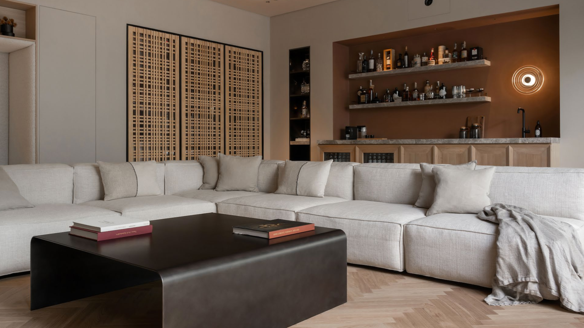 An intimate home lounge cinema featuring ambient lighting, discreet automation, and seamless integration, delivering an immersive viewing experience